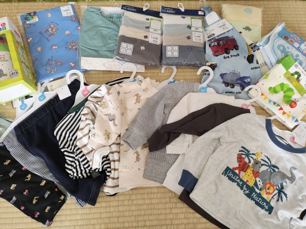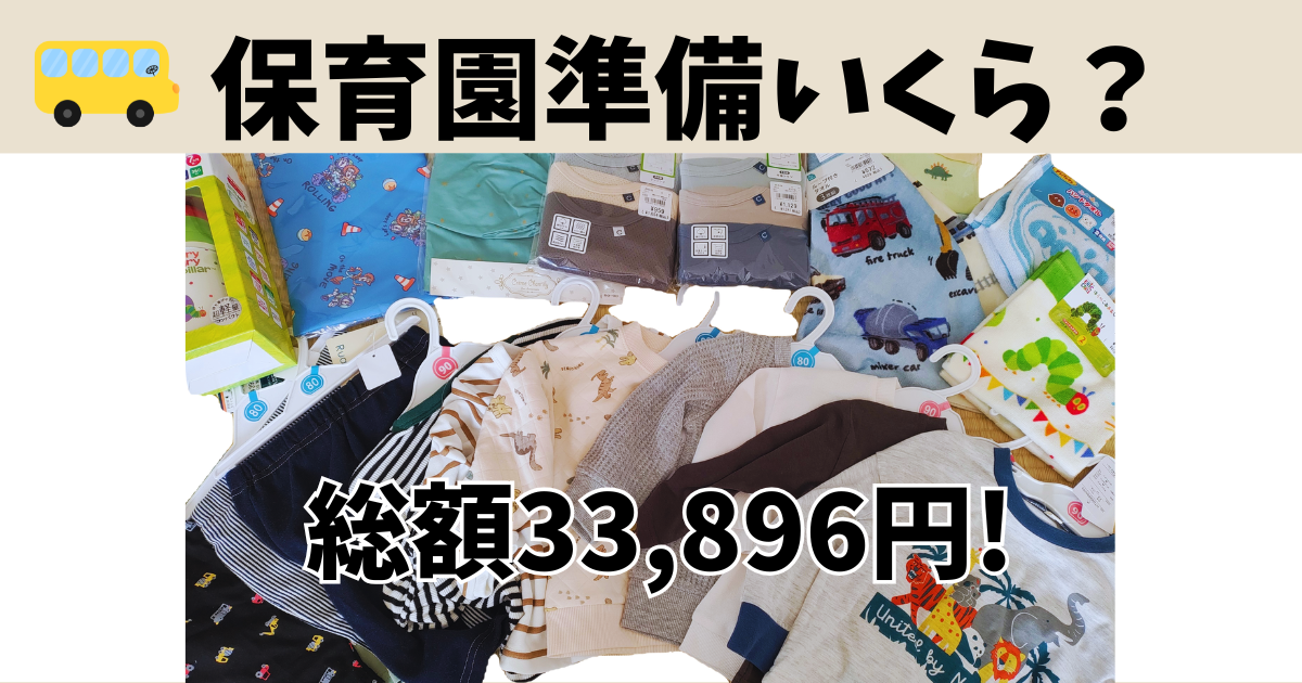 総額33,896円でなかなかの高額になりましたが、西松屋でまとめて購入したので、必要なものの数のわりに安価におさえられたと思います。特にTシャツやズボンが199円か399円なのが効いてると思います!